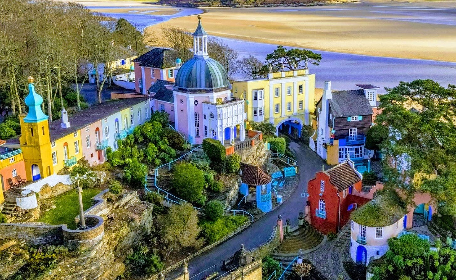 The Prisoner was filmed, partly, in a real village. Portmeirion is a tourist village in Gwynedd, North Wales. It lies on the estuary of the River Dwyryd in the community of Penrhyndeudraeth. The architecture is eccentric, even whimsical, evoking a classic Meditaerranean settlement, full of color and embellishments.